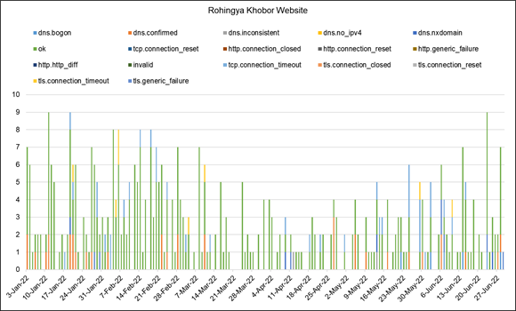 To examine the current state of internet censorship in Myanmar, this report looks at network interference measurements from OONI data during the period from 1 January 2022 to 30 June 2022.