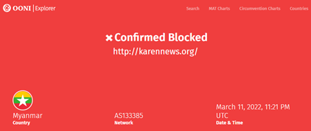 In this study, we utilized OONI data which is run and collected by volunteers in Myanmar, to examine internet censorship in order to assess levels of internet freedom, freedom of expression and access to information. State surveillance has increased privacy and security concerns, immediately after the coup d’état in the country, however the period of assessment for this study was a year after the event.